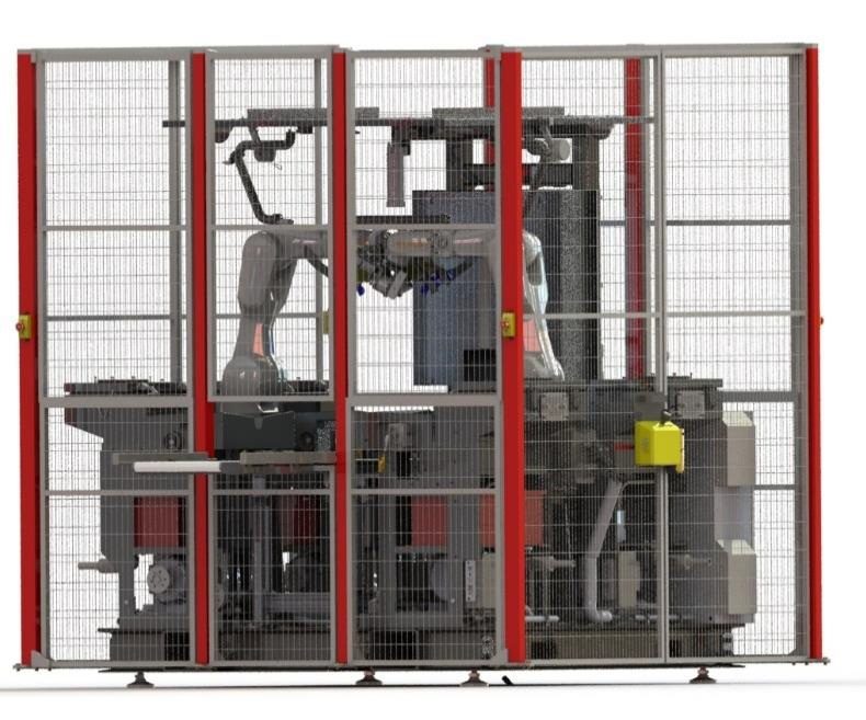 • Industrial frame, metal enclosure, safety doors, and cameras